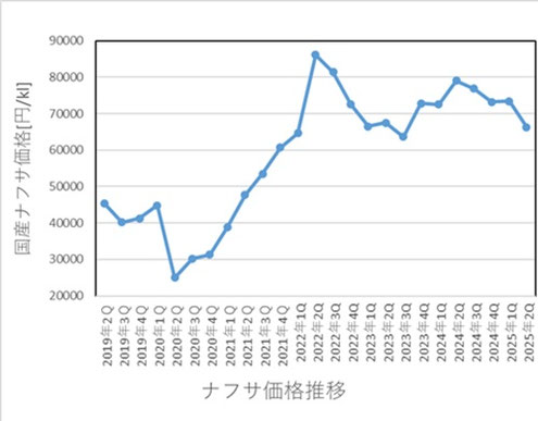 2025年2Qのナフサ価格は66,300円/kLとなりました。